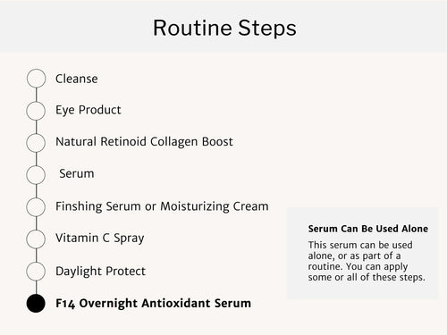 F14 SERUM IS PERFECT AS A STAND ALONE NIGHT TIME SERUM OR AS PART OF A ROUTINE